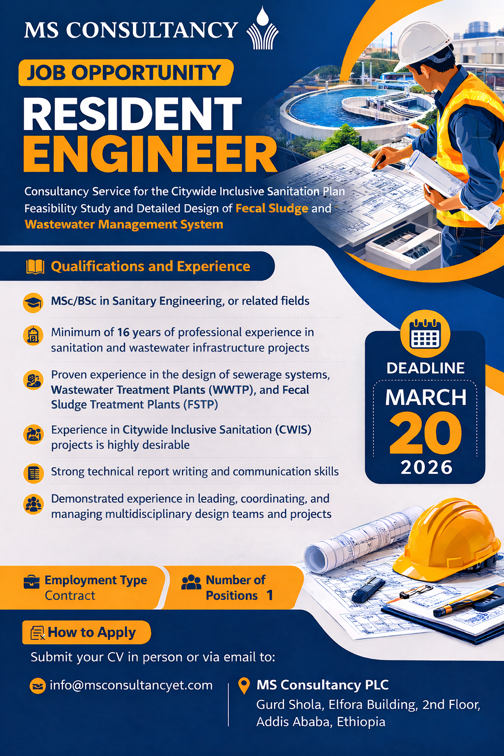 - Harar WWTP Project: Minimum 14 years of relevant experience, including at least 6 years in WWTP and sewer line construction